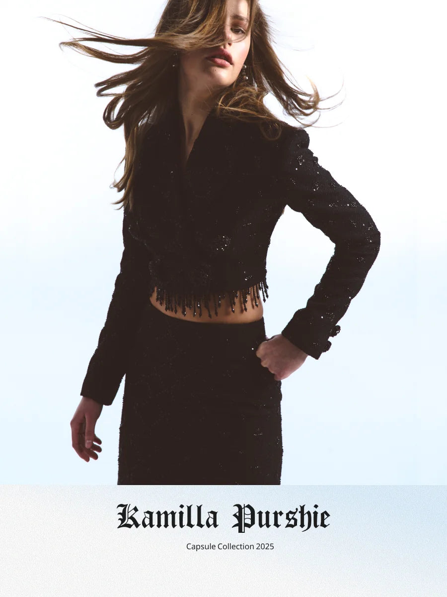 Short tweed suit with sequin trim