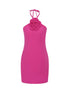 A vibrant fuchsia mini dress with a sculpted fabric rose. The minimalist design highlights the power of color and the beauty of simplicity.